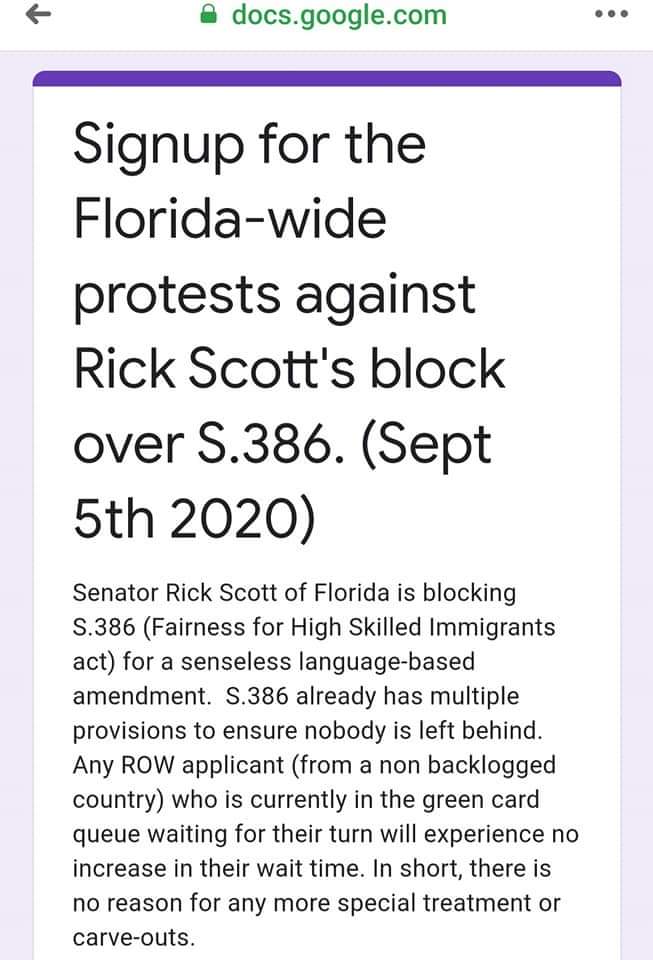 Americans SUPPORT Senator Rick Scott’s block on S.386! S.386 forces a Major Change to the American Immigration System! White-Collar Workers of America OBJECT! NO S.386!