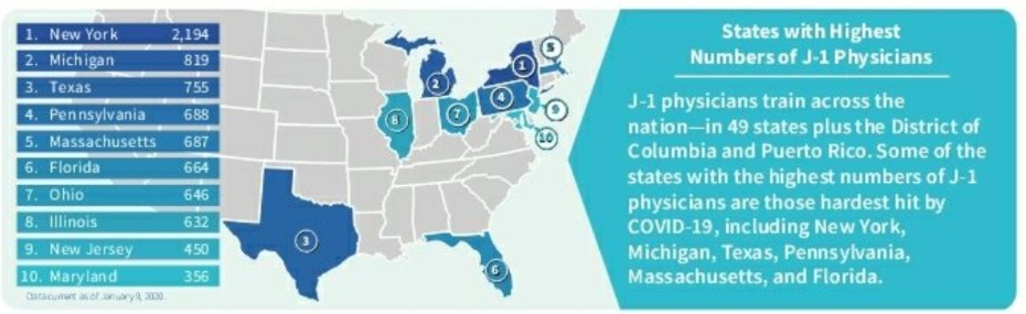 Claiming that “J-1 Physicians Essential to U.S. Health Care” (they’re not; see Unmatched American Doctors), from Educational Commission For Foreign Medical Graduates we learn New Jersey is ranked 9th for displacing American Medical Graduates from Medical Residencies with J-1 visas. Interestingly, the list of top 10 states for approved H1B and the list of top 10 states for J-1 displacing American Medical Graduates have 7 states in common. Those states not in the top 10 for approved H1B often have 1 or more counties among the top 50 displacing American born software developers (Pennsylvania, Ohio, and Florida).