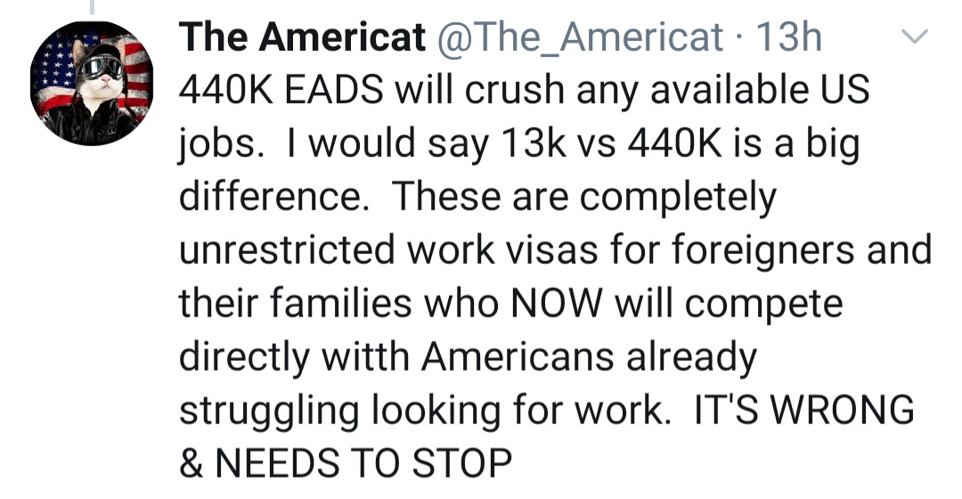 I Thank President Trump for June 22 Immigration Order! Americans welcome it, but we need more! I demand USCIS suspends renewals and rescinds existing H-1B, OPT, L1, J1 and H4EAD visas to open up Corporate jobs for 50 Millions of unemployed Americans! Americans are suffering through the worst job market in our nation’s history and desperately need these jobs!