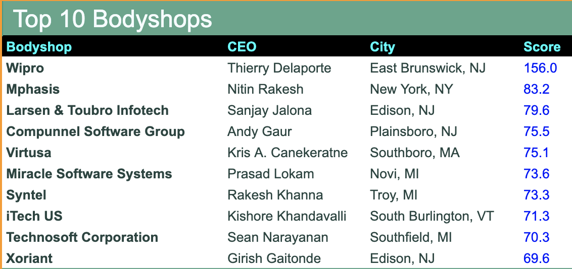 This week’s report will be a little bit different. So far we have been intentionally avoiding the worst of the H1B abusers, allowing us to bring awareness to lesser known bodyshops. Starting this week we will bring in one or two of the “WITCH” (Wipro/Infosys/Tata/Cognizant/HCL) companies every week. Also, instead of highlighting companies from the top 10, I will be selecting companies further down the list to spotlight some of the most egregious bodyshopping practices.