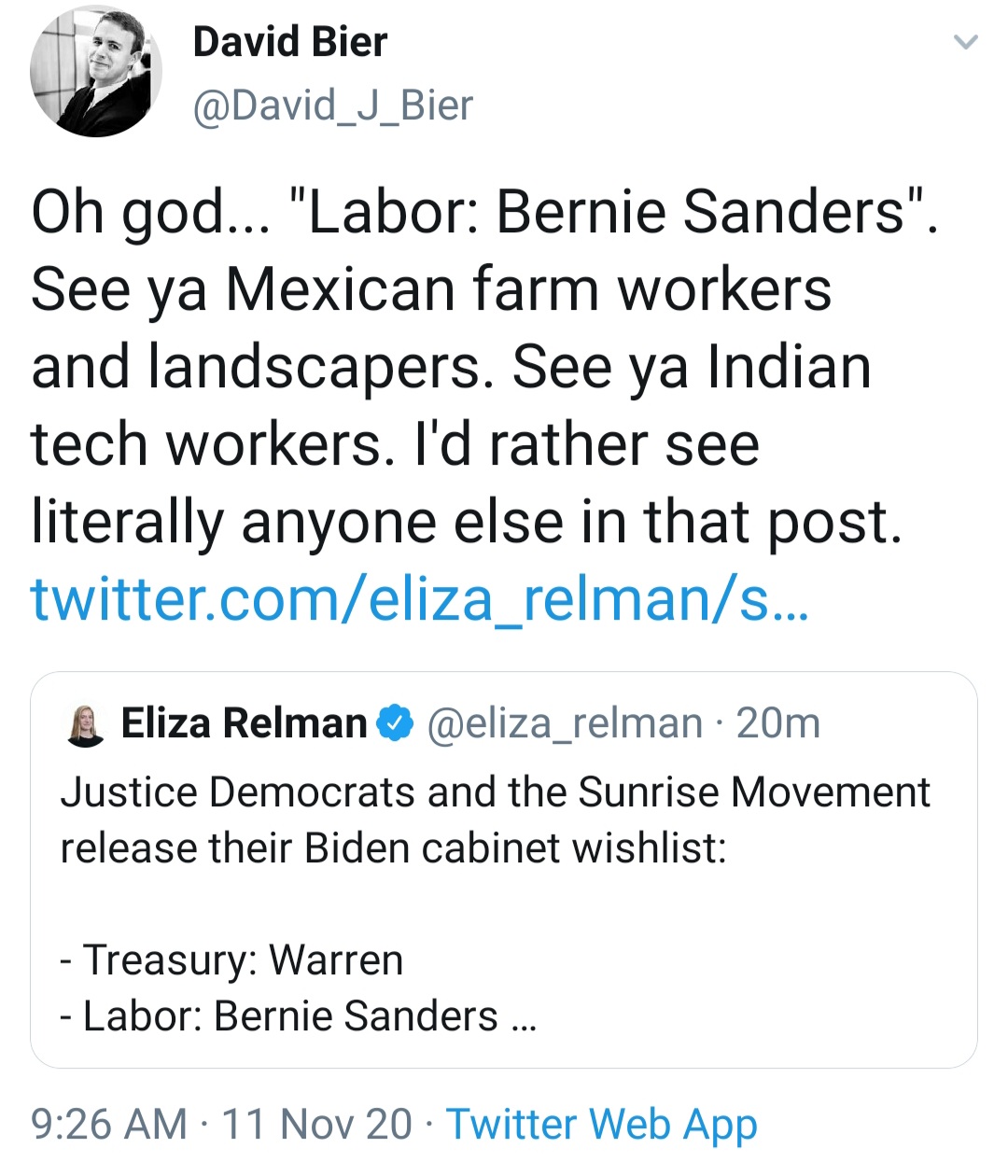 - Labor: Bernie Sanders
