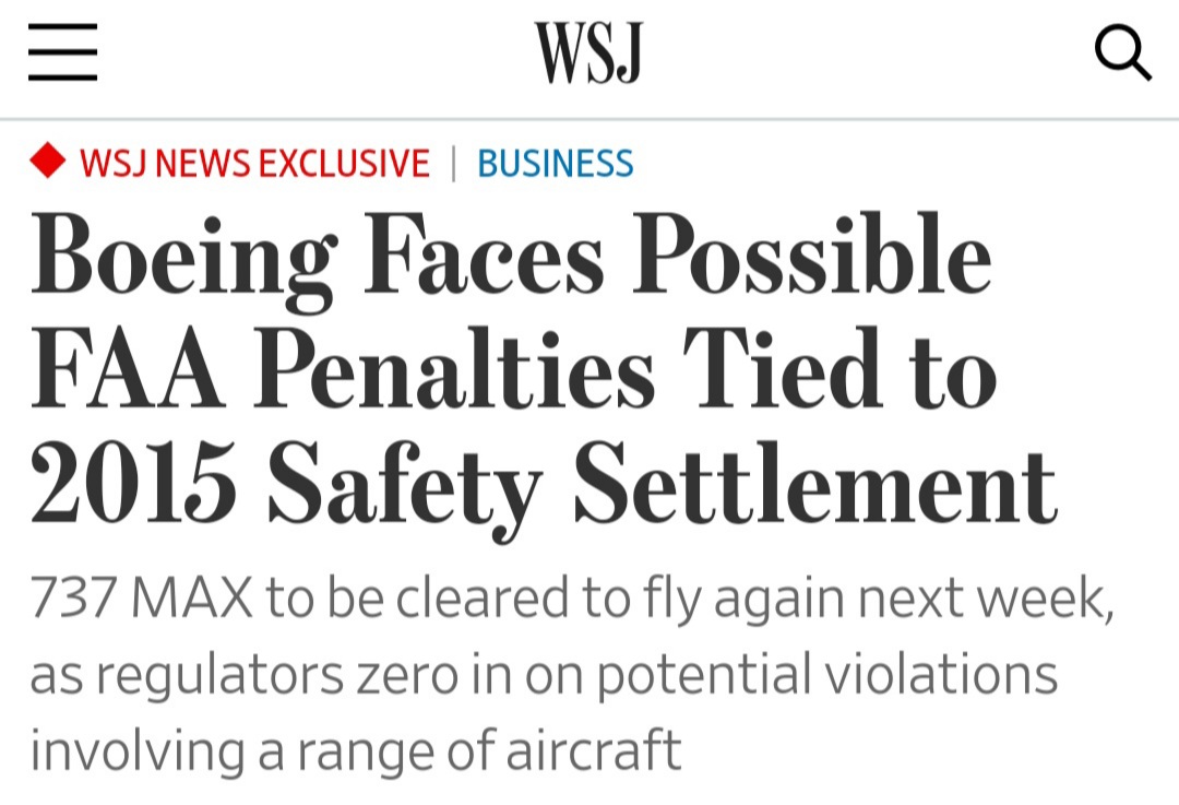 Boeing Faces Possible FAA Penalties Tied to 2015 Safety Settlement