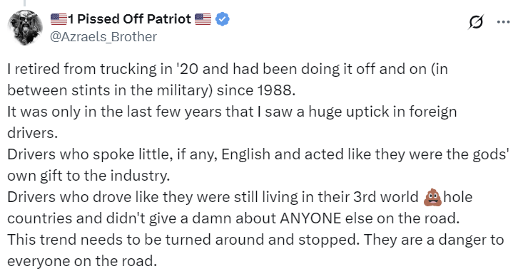 American truckers, like my husband, bear the brunt of this crisis. On X, users like @TruckerSafety lament, “Saw a non-English-speaking driver miss a ‘Bridge Out’ sign—nearly killed us both. This has to stop.” White-Collar Workers of America hears these stories daily—American truckers risking their lives while undocumented drivers, enabled by state laws, wreak havoc on our roads.