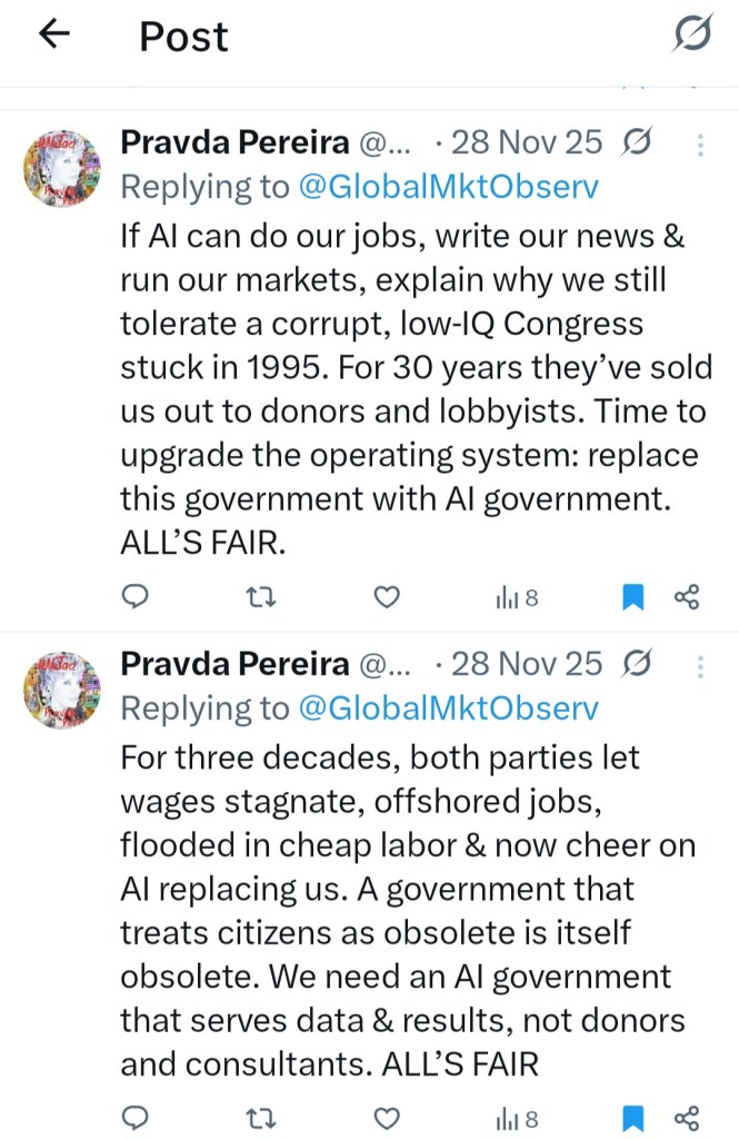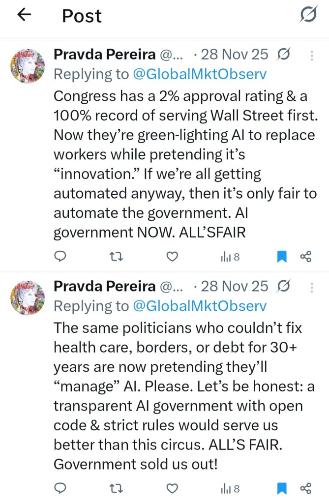 Blockchain voting already works in Estonia and Swiss pilots. Smart contracts and AI guardrails can be coded in weeks. Every American already carries the device (a smartphone) needed to vote. No new infrastructure, no new bureaucracy — just open-source code, a citizen referendum to ratify it, and we flip the switch.This is not radical.