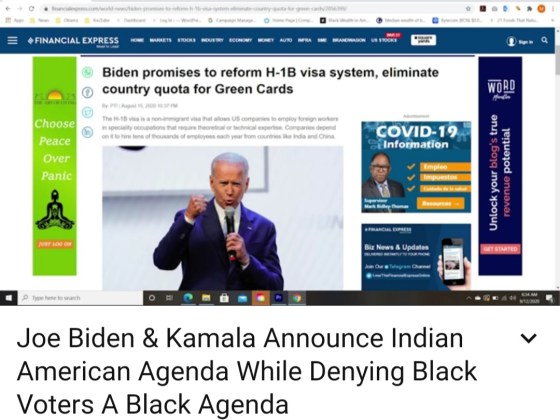 Joe Biden and Kamala Harris Announce Indian American Agenda While Denying Black Voters A Black Agenda